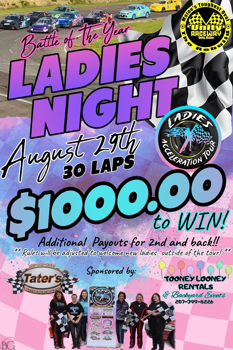 Thanks to our incredible sponsor, Tooney Looney Rentals & Backyard Events LLC & Tater's Nascar, the Ladies Acceleration Tour will be competing for a massive $1,000.00 payout—the biggest of the season! For this special event, they're swapping their usual asphalt for the unpredictable challenge of the dirt track. This is more than just a race; it's a test of skill, courage, and grit. ??